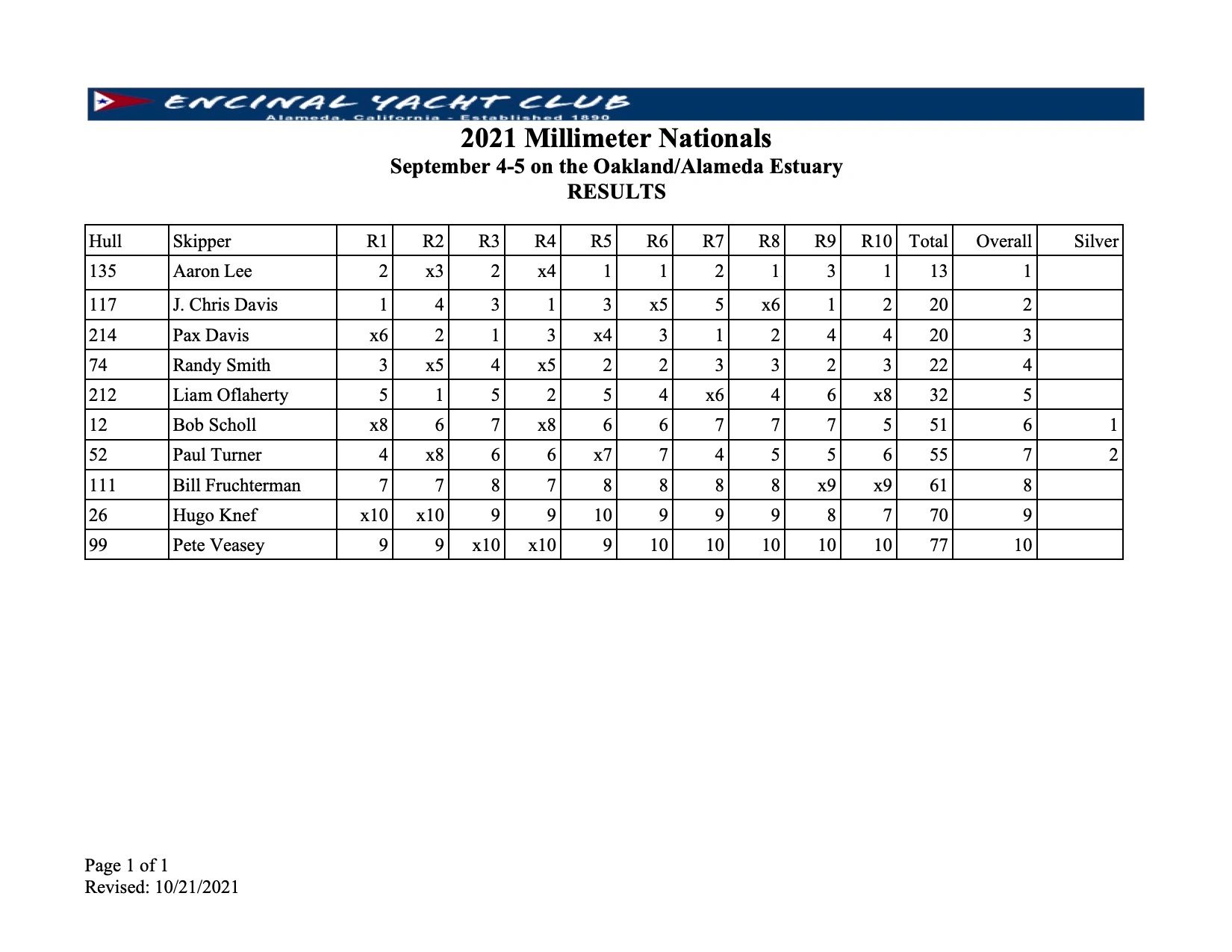 The Millies had the right guy Winning the championship. Aaron Lee, he won by a nice margin, but he did more than that. He wrote the regatta instructions, did the pre regatta measuring, planned the very successful dinner and selected and purchased the trophies.